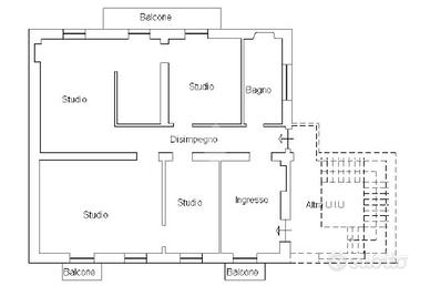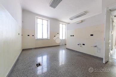 L'immobile si trova a Casale Monferrato, in posizione centrale, comodo ad ogni tipo di servizio e situato a due passi da Piazza Castello. L'ascensore e la scala esterna portano al piano primo dove troviamo un appartamento accatastato attualmente come studio, ma con la possibilità di poterlo rendere abitativo, in quanto sono già presenti gli allacciamenti per ottenere una cucina, cinque stanze di cui tre con l'uscita sul balcone ed un bagno con la possibilità di ricavare una doccia. Al piano seminterrato cantinato possiamo trovare il reparto caldaia ed i vari locali tecnici. La caldaia è a condensazione, i serramenti sono tutti in pvc con il doppio vetro, la porta d'ingresso è blindata e tutti gli impianti sia idraulici che elettrici sono stati rifatti attorno agli inizi del 2000. Sono presenti inoltre la scala interna e l'ascensore per il raggiungimento dei piani più alti.