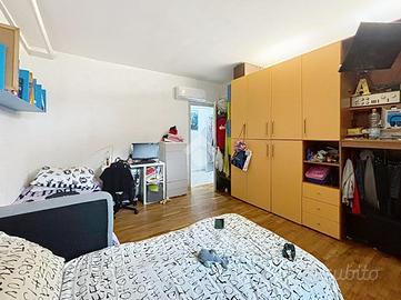 L'ingresso accompagna direttamente nella luminosa zona giorno, un grande ambiente open space di circa 35 mq che unisce sala e cucina, ideale per vivere e condividere la quotidianità. Dalla cucina si accede a un pratico balconcino verandato, perfetto come zona lavanderia.