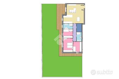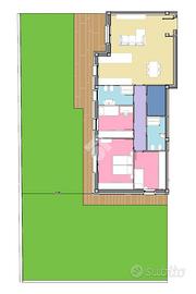 un ampia zona giorno di 40 mq, con accesso ad una zona pavimentata del giardino, tre camere da letto spaziose. Sono presenti i due bagni che garantiscono comfort e praticità ed un grande ripostiglio adibibile a lavanderia o ultertiore bagno.