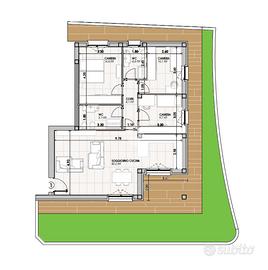 Situato al piano terra, l'appartamento si estende su circa 115 mq e offre un giardino privato di 95mq, con zona coperta ideale per momenti di relax all'aperto.