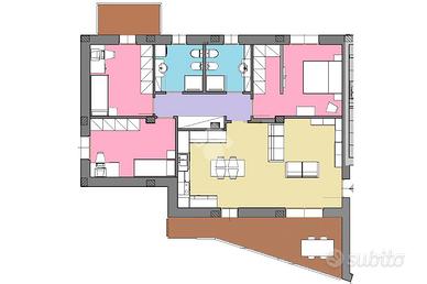 Soggiorno , cucina, tre camere, doppi servizi ambedue con finestra, ed una funzionale zona ripostiglio/armadio a muro.
