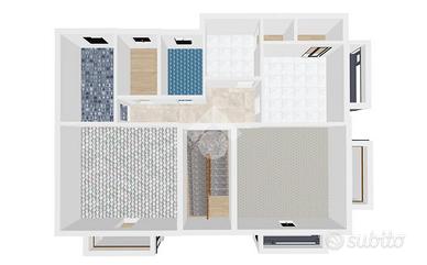 l'appartamento si svlippa su una surpeficie di 140 metri quadrati ed è composto da un ampia zona giorno due camere da letto due bagni e due disimpegni, infine al terzo piano vi è un comodo e ampio terrazzo ideale per trascorrere momenti di relax all'aperto