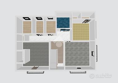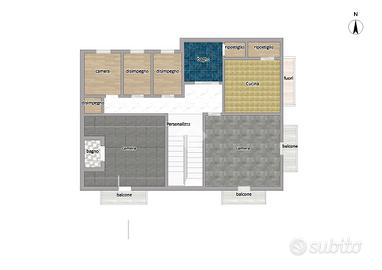 l'appartamento si svlippa su una surpeficie di 140 metri quadrati ed è composto da un ampia zona giorno due camere da letto due bagni e due disimpegni