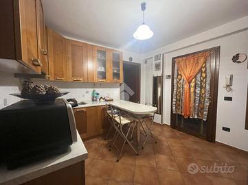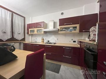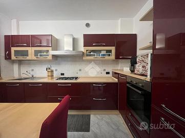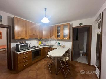 La zona giorno prosegue con un ampia cucina abitabile ed una comoda loggia.