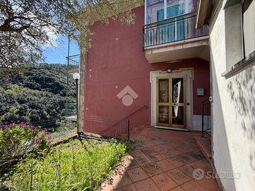 Castiglione Chiavarese - Località Casali Situato in una tipica casa bifamiliare, l'appartamento di 115 mq gode di un ingresso indipendente. L'accesso è pedonale tramite due caratteristiche scalinate esterne che conducono all'abitazione, dove veniamo accolti da un corridoio di disimpegno che collega armoniosamente tutti gli ambienti. L'immobile vanta una metratura generosa e una distribuzione classica, ideale per una famiglia o per chi desidera ampi spazi: da zona giorno composta da una cucina abitabile spaziosa e un soggiorno accogliente, da zona notte che vanta ben tre camere da letto, perfette per ospitare figli, ospiti o creare uno studio professionale e servizi, bagno e una pratica zona lavanderia separata. Sebbene l'interno si presenti nel suo stato originale dell'epoca di costruzione -- offrendo così l'opportunità di una personalizzazione totale secondo il proprio gusto -- le condizioni esterne della casa sono buone. Attualmente il calore è garantito da una tradizionale stufa a legna, che conferisce un fascino rustico e genuino agli ambienti. Il vero punto di forza sono gli spazi all'aperto: è la splendida terrazza con accesso diretto dalla cucina e da due camere, ideale per colazioni al sole con vista aperta sulla vallata; dalla corte privata, accessibile dalla zona lavanderia, perfetta per momenti di relax o per i propri animali domestici; e da un'ampia cantina di circa 25mq già dotata di acqua, utilissima come laboratorio o deposito posizionata al piano terra. L'esposizione è eccellente, rendendo la casa estremamente luminosa durante tutto il giorno. La posizione è strategica: estremamente comoda alla strada statale e alla fermata dell'autobus, facilitando gli spostamenti verso la costa o i centri vicini. Il plus: Per chi desidera un po' di 'verde' in più, vi è la possibilità di acquistare separatamente due fasce di terreno adiacenti all'immobile, ideali per un orto o un giardino privato.