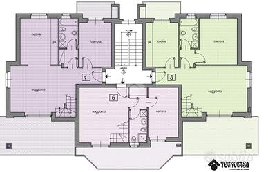 Il progetto prevede tre appartamenti al piano terra con giardino privato e portico, e tre unità al primo piano dotate di terrazzo e ampio sottotetto di proprietà.