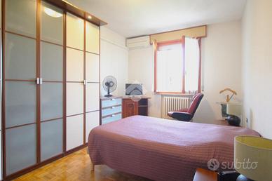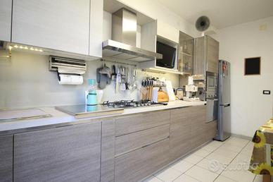 All'ingresso troviamo la zona giorno composta da cucina abitabile con accesso all'ampio balcone, in parte verandato ed il luminoso soggiorno anch'esso servito da balcone.