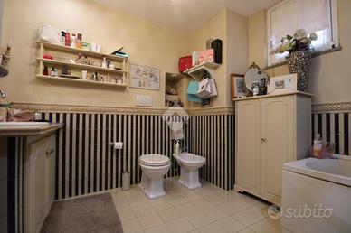 Salendo la scala interna, si accede alla zona notte, dove un disimpegno versatile può essere utilizzato come studio. Qui troverai tre camere da letto spaziose e un ampio bagno finestrato dotato di doccia e vasca. La cabina armadi aggiunge un tocco di lusso e funzionalità. L'appartamento è in buone condizioni generali e abitabile fin da subito, con infissi in doppi vetri e due condizionatori caldo/freddo per il massimo comfort.
