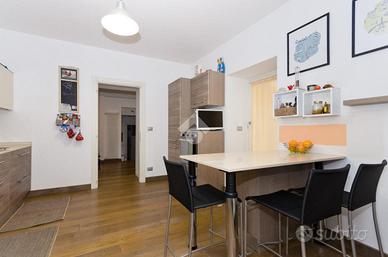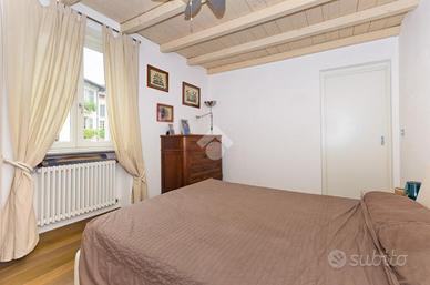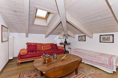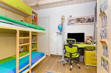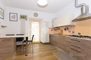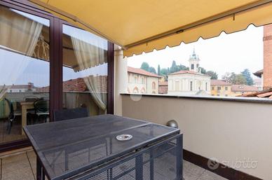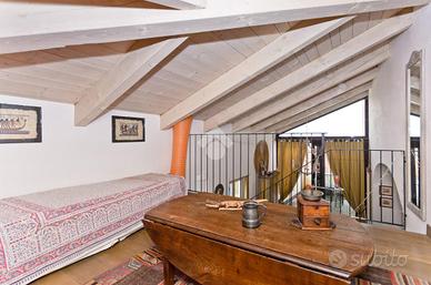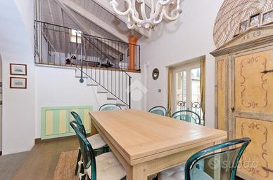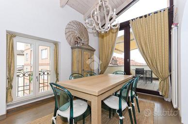 Nel centro storico di Chieri, comodo ai servizi e a pochi passi dalla via pedonale dove si trovano negozi, bar e supermercati. questo appartamento si trova al secondo e ultimo piano di un piccolo contesto. La soluzione si distingue per gli alti soffitti in legno e a volta. L'ingresso accompagna sul soggiorno, spazioso e luminoso, in cui si trova un camino incassato nella muratura. La cucina abitabile, separata dal soggiorno, offre ampie metrature permette l'uscita sul balcone. La zona pranzo si distingue dalla zona giorno e dona uno spazio fruibile per momenti di convivialità dando anche accesso al terrazzo con vista panoramica dove sono state installate le tende da sole. Da questa area della casa si accede, tramite scala interna, al livello superiore che prevede tre locali accessori versatili e personalizzabili. La zona notte è composta da due camere da letto di cui una matrimoniale. Il servizio è dotato di doccia. La pavimentazione è uniforme per tutte le zone della casa ed è in parquet. Gli infissi sono in doppi vetri. L'immobile si presenta in ottime condizioni grazie alla recente ristrutturazione e alle rifiniture di pregio.
