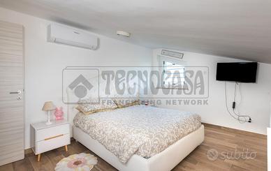 Nella zona di Via dei Laghi, più precisamente in Via Fontana dei Monaci, all'interno di un piccolo condominio di soli 10 appartamenti costruito nel 2025, proponiamo in vendita un appartamento bilivello posto al piano primo e mansarda senza ascensore. La zona è tra le più richieste del Comune per le unità immobiliari di tipo residenziale perché garantisce tranquillità e cura del circondario ma contestualmente ben servita e vicina al Centro Città.Al primo piano, si trova un ingresso, ampio salone, cucina abitabile, una camera matrimoniale e un bagno, il tutto con uscita su un balcone angolare con loggia, ideale per momenti di relax all'aperto. Al secondo piano, troviamo un'altra camera matrimoniale e due camerette di cui una con terrazzo ed un secondo bagno.La proprietà include anche un box auto di circa 30 mq, collegato attraverso la scala interna del vano condominiale assicurando comodità e sicurezza.Si posiziona in una zona residenziale e tranquilla, ma grazie alle sue caratteristiche moderne, questa soluzione abitativa rappresenta un'opportunità interessante per chi cerca una casa spaziosa e ben collegata. La zona risulta veramente strategica per chi la ha necessità di utilizzare l'automobile per gli spostamenti in quanto si raggiunge velocemente il Grande Raccordo Anulare, allo stesso tempo però la stazione ferroviaria di Ciampino Casabianca risulta essere raggiungibile a piedi. Inoltre nelle immediate vicinanze sono presenti tutti i servizi primari, attività commerciali, mercato settimanale, supermercati e ristorazione.Dispone di tutti i migliori comfort tra cui: scala interna con ringhiera in vetro che aggiunge design e luca alla casa, zanzariere, grate di protezione, persiane blindate, videocitofono, riscaldamento a pavimento, condizionamento in tutti gli ambienti e 3 kw di impianto fotovoltaico esclusivo di recente installazione.Le immagini e le proporzioni riportate nell'annuncio non sono da intendersi oggetto di vincolo contrattuale, bensì sono da intend...