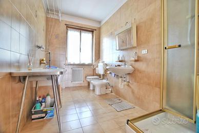 L'appartamento da noi proposto è situato al secondo ed ultimo piano di un piccolo contesto condominiale. La porta d'ingresso blindata si apre sul soggiorno; l'ampio locale accede al balcone con vista sul cortile interno e comunica con la cucina, abitabile, ed il bagno di servizio della zona giorno è accessoriato di lavatoio, allacci per la lavatrice e doccia. Tre camere da letto compongono la zona notte: la prima è di modeste dimensioni, ideale da adibire a studio, la seconda, di metratura maggiore, è pavimentata in parquet ed è ideale come cameretta, ed infine la camera matrimoniale: anche quest'ultima decorata da una pavimentazione in parquet a spina di pesce. Tutte le camere consentono uno sfogo esterno; le prime due permettono di accedere al proprio balcone con affaccio su strada, mentre la camera matrimoniale consente l'accesso al medesimo balcone esposto verso il cortile comune. Il bagno della zona notte è dotato di vasca.