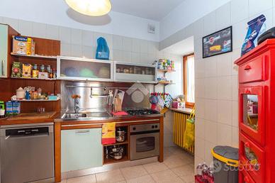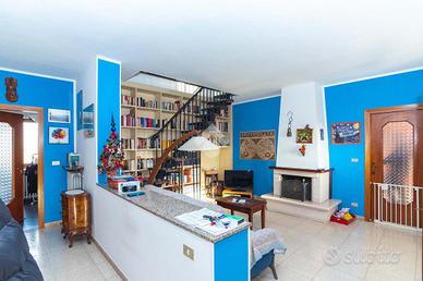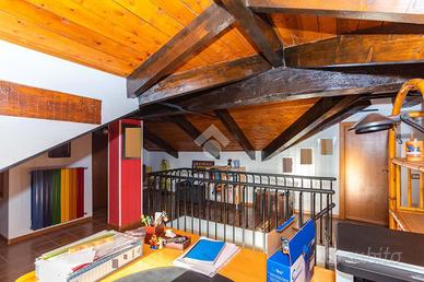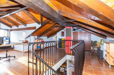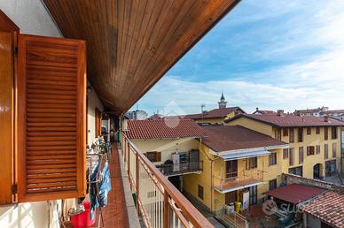 Ciriè- centro Per chi è alla ricerca della comodità dell'abitare in centro, avendo sotto casa ogni tipologia di negozio e servizio, disponiamo di alloggio dall'ampia metratura, disposto su due livelli.L'immobile Fa parte di una casa trifamiliare , ristrutturato negli anni 90.La casa é ubicata un una traversa della centralissima via Vittorio Emanuele II, in contesto decoroso e tranquillo,ed avendo ottima esposisione è molto arioso e luminoso.La stazione ferroviaria, uffici di vario tipo, scuole, ospedale ,etc, sono raggiungibili comodamente a piedi. Attraverso scala condominiale si accede al piano dove Il portoncino blindato sì apre direttamente sulla zona giorno, la quale si compone dal soggiorno con camino a legna funzionante e dal tinello che si integra con il cucinotto. Tutta la zona giorno affaccia suun primo balcone che da' sul centro storico.La zona notte invece è formata da due camere da letto matrimoniali e sono servite da un secondo balcone di servizio.Il bagno con doccia, ristrutturato una decina di anni fa completa il piano.Attraverso la scala in legno si giunge al piano mansardato dove si hanno due ampi spazi sfruttati a studio e un secondo bagno di servizio. Riscaldamento autonomo a metano e la caldaia a condensazione è stata recentemente sostituita. Al piano strada interno cortile si trova il box di generose dimensioni.