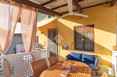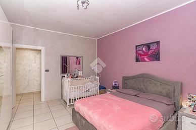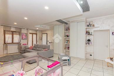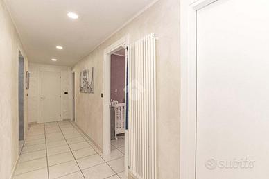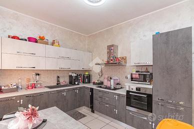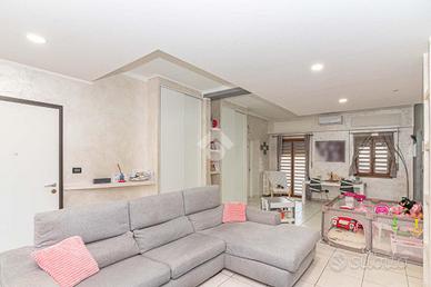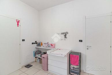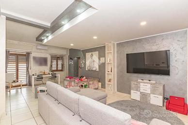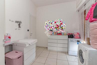 Il portoncino blindato immette in un ampio salone, con accesso diretto ad entrambi i balconi che circondano la soluzione e con infissi con vetrocamera. La zona giorno si completa con una cucina abitabile con terrazzino coperto, sfruttabile per momenti di convivialità. La zona notte è composta da due camere matrimoniali, da una cameretta, un bagno corredato di doccia, una lavanderia ed un ampio ripostiglio.