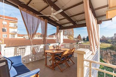 CIRIE'- ZONA DEVESI In stabile di sole tre unità abitative, appartamento al primo piano con riscaldamento autonomo Il portoncino blindato immette in un ampio salone, con accesso diretto ad entrambi i balconi che circondano la soluzione e con infissi con vetrocamera. La zona giorno si completa con una cucina abitabile con terrazzino coperto, sfruttabile per momenti di convivialità. La zona notte è composta da due camere matrimoniali, da una cameretta, un bagno corredato di doccia, una lavanderia ed un ampio ripostiglio. Punti di forza: l'ampia metratura, il riscaldamento con propria caldaia e climatizzatori inverter caldo-freddo, le bassissime spese di gestione condominiali La proprietà si completa con un garage doppio ed un box auto singolo. La soluzione risulta ideale per chi cerca la tranquillità con la comodità di avere i servizi principali (panetteria, caffetteria, servizio postale, veterinario ecc.) a pochi passi da casa