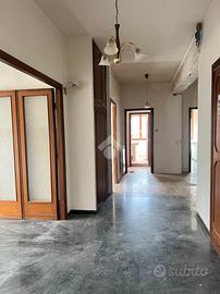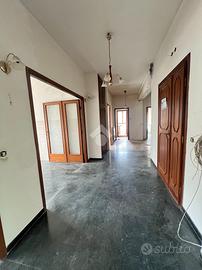 L'abitazione vera e propria, di 130 mq calpestabili, si trova al primo piano e grazie all'ampia metratura si presta a molteplici riadattamenti; ad oggi abbiamo cucinino, salone, un ampio corriodio di ingresso, 5 camere e doppi servizi. Tutte le stanze sono molto luminose grazie alle ampie finestre e alcune affacciano sui balconi esterni che circondano l'abitazione, regalando bellissimi affacci sul giardino.