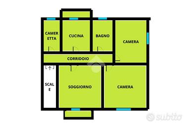 L'appartamento, di 108 mq circa, esposto su tre lati e molto luminoso, si presenta allo stato originale, con cucina abitabile separata, servita da balconcino, soggiorno anch'esso con balcone, due stanze da letto matrimoniali molto grandi, una cameretta/studio, ed un bagno finestrato con vasca;