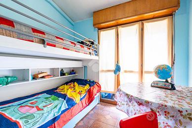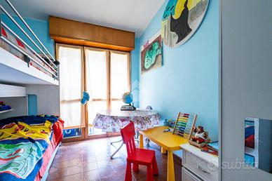 Via Plava, nelle immediate vicinanze della Metropolitana Paradiso, piccolo contesto di soli tre piani rivestito in paramano con giardino privato. Ampio 5 locali sito al terzo piano senza ascensore, composto da: ingresso living su salone doppio con accesso al balcone, cucina abitabile con affaccio sul lato interno cortile, tre comode camere da letto e a completare la soluzione troviamo un servizio dotato di vasca e box doccia. Le aperture sugli infissi in doppio vetro legno rendono l'immobile molto luminoso grazie alla sua esposizione libera su quattro lati, pavimentazione omogenea in cotto su tutta la zona giorno, bagno rivisto e condizionatore nella sala. Come pertinenze dell'immobile troviamo una cantina, box auto triplo ad euro 39.000 ed ampio magazzino di 73 mq ad euro 59.000