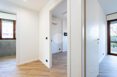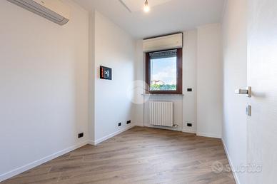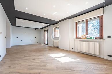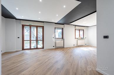 Corso Francia: in zona Regina Margherita, a pochi passi dalla futura metropolitana di Collegno Centro, posizione centrale e comoda a tutti i tipi di servizi tra cui scuole, mezzi pubblici e beni di prima necessità, pentalocale con doppio giardino. Inserito in un contesto signorile del 2002, in paramano e senza barriere architettoniche, l'immobile è stato completamente ristrutturato nel 2026 e vanta di un'ottima distribuzione interna degli spazi. Tramite il portoncino blindato si accede ad un ingresso living su soggiorno con cucina a vista con accesso diretto al giardino di 120 mq ideale per momenti di relax. Tramite il disimpegno si accede alla zona notte composta da tre camere da letto, di cui una con affaccio sull'altro giardino e dotata di cabina armadio, a differenza delle altre due camere che sono finestrate. Inoltre sono presenti i doppi servizi, di cui uno cieco e dotato di ventilazione meccanica ma entrambi serviti di box doccia. In ogni ambiente è presente il condizionatore con pompa di calore caldo/freddo.Gli infissi sono in legno doppio vetro, il riscaldamento è autonomo e le tapparelle sono motorizzate. Inoltre è presente anche un comodo ripostiglio. Completa la proprietà la cantina piastrellata situata al piano interrato, accessibile tramite ascensore condominiale.