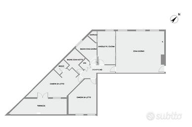 L'immobile si presta ad un cambio di destinazione di uso, da UFFICIO (A/10) ad ABITAZIONE (A/2), così da poter creare o un appartamento grande , o due appartamenti con ognuno il suo ingresso. ( entrambe le soluzioni sono state impotizzate nelle planimetrie inserite in annuncio ).
