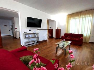 Libero sui quattro lati l'immobile, gode di spazi invidiabili, luminosi ed ariosi, ideali ad accogliere una famiglia numerosa. L'ingresso indipendente è ampio e gode di un comodo ripostiglio; la zona giorna si compone di un'accogliente salotto e di una zona pranzo/ cena attigua alla cucina separata e abitabile. Il disimpegno centrale disloca la zona notte composta dalle tre spaziose camere da letto, complete di balcone, e dal bagno finestrato completo di funzionale box doccia. La proprietà si completa con il box al piano terra.