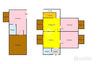 L'immobile è composto da: ingresso con grande disimpegno, salone, cucina abitabile con camino, tre vani letto e due bagni forniti di vasca e doccia.
