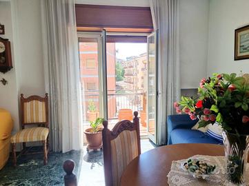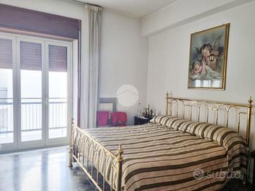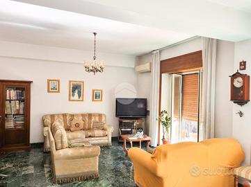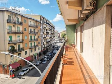 Un ampio ingresso ci accoglie nel doppio salone servito da uno spazioso balcone con affaccio panoramico su piazza Zumbini;