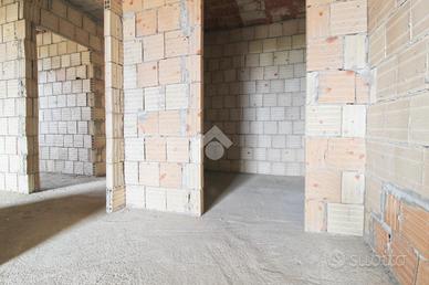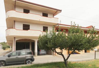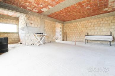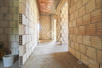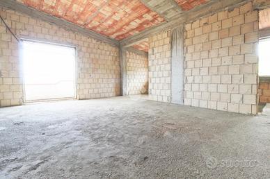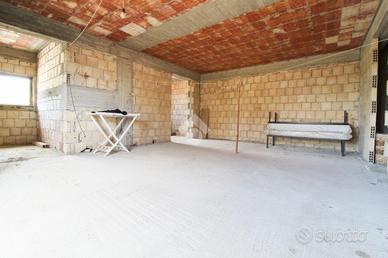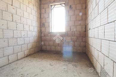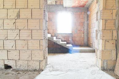Si compone di due appartamenti e due magazzini con porticato, da completare internamente.