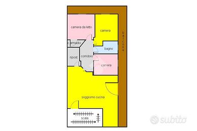 L'ingresso conduce ad uno spazioso open space cucina-soggiorno, per poi arrivare alle doppie camere, il bagno, il ripostiglio ed un locale da adibire eventualmente a cabina armadio.