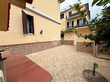 Punto di forza della proprietà è l'ampia corte esterna pavimentata al piano terra, uno spazio ideale per momenti di relax all'aperto, pranzi e cene in compagnia, arricchito da barbecue in pietra e doccia esterna. Un valore aggiunto importante è il box auto, particolarmente comodo in pieno centro.