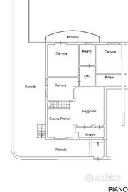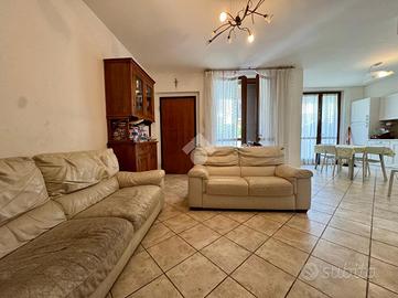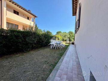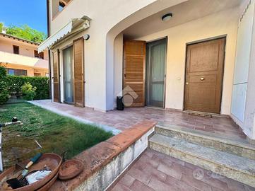In zona residenziale proponiamo in vendita appartamento al piano terra con ingresso indipendente e giardino che circonda su due lati la proprietà.