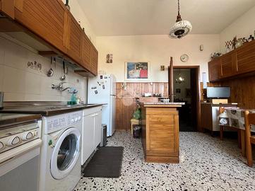 L'immobile si apre su un ampio disimpegno che conduce da un lato ad un luminoso soggiorno e dall'altro ad una cucina abitabile, dotata di porta finestra che affaccia su un primo balcone.