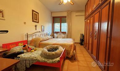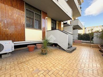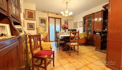 In strada interna, ubicata nelle vicinanze dei principali servizi della zona, proponiamo in vendita un grazioso appartamento al piano terra rialzato, composto da cinque locali: ampio soggiorno con accesso ad un primo terrazzo ed al resede, cucina abitabile con accesso al secondo terrazzo ed al giardino tergale, tre camere da letto matrimoniali e due utili servizi igienici.
