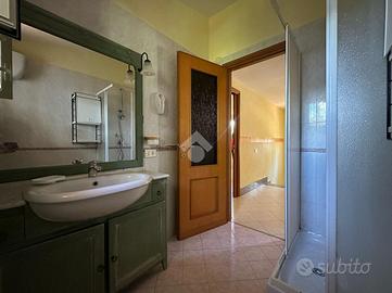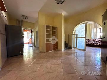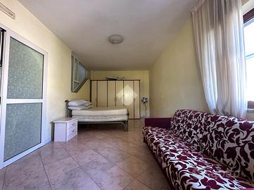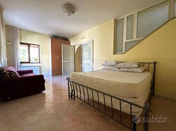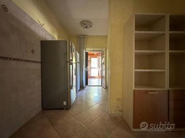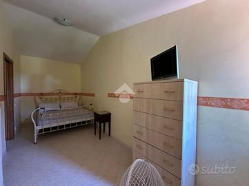 * Piano Terra: zona giorno, composta da un porticato, ampio ingresso, soggiorno con angolo cottura, bagno finestrato con doccia e sala, attualmente adibita come camera da letto;
