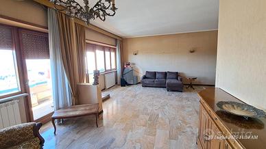 L'appartamento di ampia metratura è composto da: salone, cucina abitabile, 4 comode camere da letto, 2 bagni, ripostiglio e 3 balconi. Dispone di una cantina nel piano seminterrato e di un posto auto coperto all'interno dell'ampia area residenziale.
