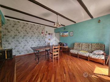 Tramite il portoncino blindato si accede direttamente all'ampio soggiorno con sfogo su un balcone per ammirare il panorama.
