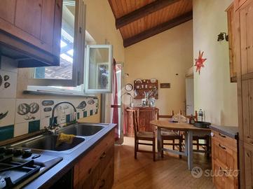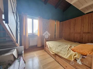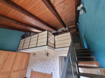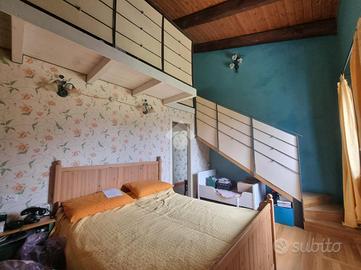 La zona notte è composta da una camera da letto matrimoniale di pianta quadrata, una camera singola e una camera da letto soppalcata con la particolarità delle travi a vista.
