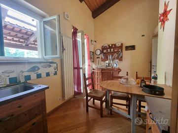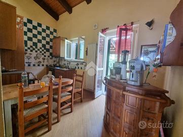 La cucina rimane separata e abitabile ed tramite una porta-finestra è possibile godere di un terrazzo coperto, ideale per trascorrere i momenti di relax.