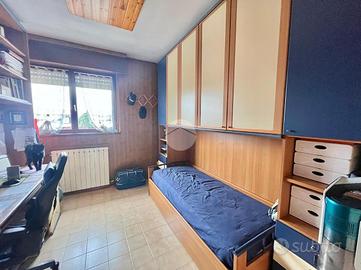 L'ingresso si apre direttamente sulla zona giorno, composta da un accogliente soggiorno con zona cottura separata. L'ambiente risulta particolarmente luminoso grazie alla grande vetrata scorrevole che consente l'accesso al terrazzo, dotato di tende estive e invernali, dal quale si gode di una piacevole vista sulle colline. Adiacente alla zona giorno si trova una delle tre camere da letto.
