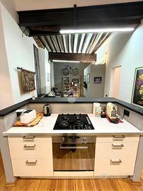 La cucina abitabile e su misura, è a tutta lunghezza, con isola.