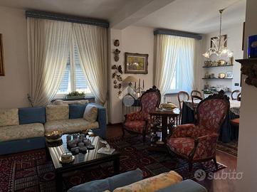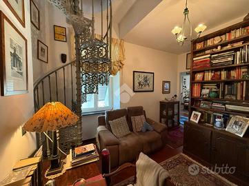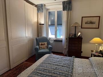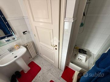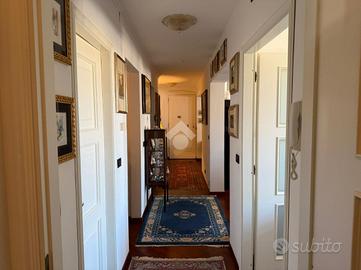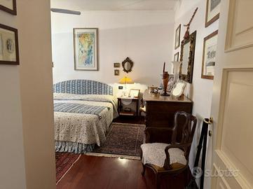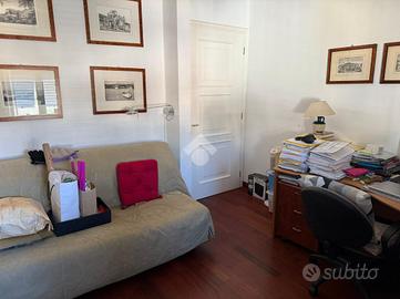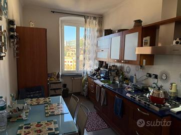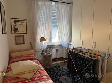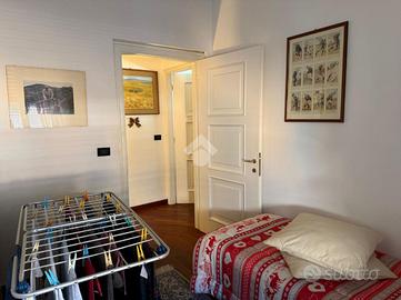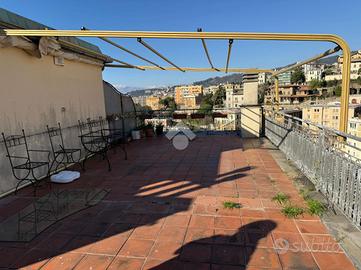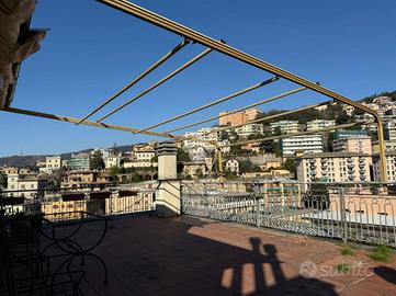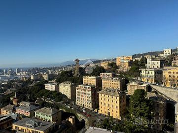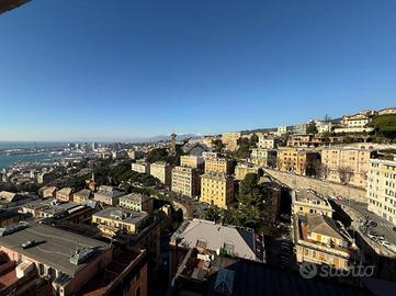 La zona notte si divide invece da una camera da lettto matrimoniale, due camerette, due bagni finestrati, zona lavanderia e da uno studio da cui si accede a un terrazzo di 80 Mq circa che grazie all'ottima esposizione gode di una vista panoramica su tutta genova.