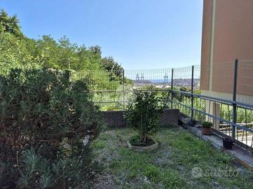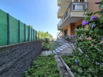Il giardino è piantumato, immerso nel verde con scorcio mare e offre uno spazio esterno perfetto per il relax e il tempo libero.