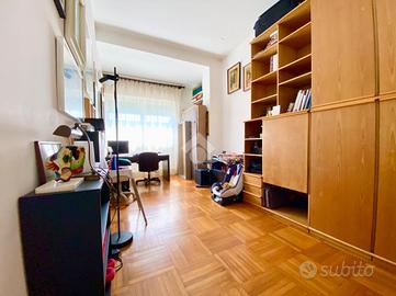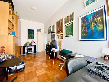 L'appartamento è esposto ad Est sulla verde piazza sottostante, luminosissimo ad ogni ora del giorno e sempre silenzioso.