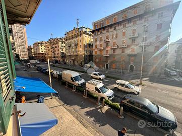 Nel cuore di Sampierdarena, a Genova, si propone in vendita un ampio appartamento di 102 mq, situato al primo piano di un palazzo in ottimo stato in tutte le sue oparti comuni.