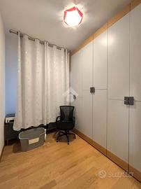 La zona notte comprende due camere da letto e un comodo studiolo, ideale come spazio smart-working o piccola zona hobby. Il bagno, finestrato, e dotato di vasca utilizzabile anche come doccia.