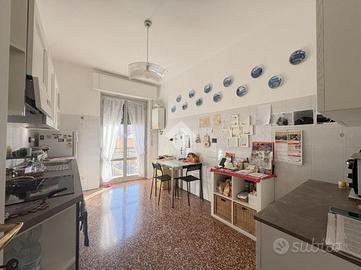 TEL. VIA ALDO MANUZIO - APPARTAMENTO 7 VANI LUMINOSO CON BALCONATA E CANTINA Ci troviamo nella seconda metà di via Aldo Manuzio, a pochi passi da supermercati, fermate bus, negozi e servizi di ogni tipo. Questa zona è ideale sia per chi intende acquistare come investimento da reddito che per famiglie, data la vicinanza anche con scuole dell'infanzia. L'immobile che proponiamo, è posto al terzo piano di un palazzo degli anni '50 in buono stato di manutenzione, dotato di ascensore. L'appartamento al suo interno si presenta da riordinare, suddiviso su 7 ampi vani luminosi grazie alla balconata su cui affacciano la cucina abitabile e due camere da letto. Oltre queste stanze, troviamo anche l'ingresso arredabile, il soggiorno, un'altra camera da letto e il bagno finestrato con box doccia. Completa la proprietà, una cantina di circa 5mq posta al secondo piano dello stabile. TEL.