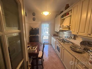 L'immobile si distingue per l'ottima distribuzione degli spazi e per una doppia esposizione che garantisce luce naturale durante tutto l'arco della giornata oltre a scorci panoramici e gradevoli affacci aperti, l'ingresso introduce direttamente alla zona giorno composta da una cucina abitabile con accesso diretto al primo balcone orientato a nord-est e da un soggiorno di ampie dimensioni impreziosito da una doppia finestra e doppia porta finestra che conduce alla seconda balconata, molto spaziosa e con un'esposizione soleggiata a sud-est che la rende perfetta per vivere momenti all'aperto in totale relax, grazie alla sua ampiezza e alla posizione centrale rispetto all'appartamento il soggiorno può essere facilmente trasformato in un'ampia e luminosa zona living con cucina a vista offrendo così una nuova distribuzione moderna e funzionale degli ambienti.La zona notte è ben separata e accoglie due camere da letto matrimoniali, una con uscita sul primo balcone e l'altra con accesso diretto alla balconata più grande offrendo così a ogni ambiente un piacevole sfogo esterno; completano la distribuzione due bagni uno finestrato e dotato di vasca l'altro con box doccia e un piccolo ma pratico ripostiglio che contribuisce a ottimizzare la gestione degli spazi interni.