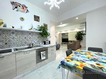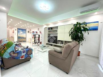 Via Stefano Tubino: in palazzo residenziale delimitato da cancello elettrico, dotato di ascensore, posti auto condominiali coperti e ampio giardino ad uso esclusivo dei condomini, proponiamo una nuova soluzione immobiliare di 7 vani. L'immobile si compone da ampio ingresso aperto sul salone, cucina abitabile, tre camere da letto di cui due di metratura matrimoniale, dispensa e bagno dotato di box doccia e finestra. Sono presenti due balconi; il primo con accesso dalla sala e dalla cucina e il secondo con accesso dalle tre camere da letto. Grazie alla recente totale ristrutturazione l'immobile si presenta in ottimo stato facendo particolare riferimento all'impianto elettrico e idraulico a norma dotati di certificato di conformità, finestre in pv con doppi vetri, tapparelle elettriche, porta blindata e impianto di condizionamento. L'impianto termico è autonomo con caldaia nuova a condensazione. Le spese di amministrazione si aggirano intorno ai 1400 euro annui. Completa la proprietà una CANTINA.