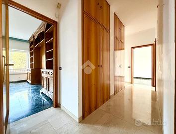 TECNOCASA STUDIO QUARTO Quarto dei Mille, proponiamo un appartamento in Via Stefano Prasca, nel prestigioso e privato 'Residence Park Riviera' composto da 7 vani per 142 mq immersi totalmente nel verde con tre ampie balconate vivibili, così composto; doppia porta di ingresso, dove l'ingresso principale si affaccia sull'ampio salone di rappresentanza dal quale si può accedere ad una balconata vivibile completamente immersa nel parco privato, la cucina abitabile gode di un balcone con una splendida vista aperta con scorcio mare che dona luminosità durante tutto il giorno, tre camere di cui una matrimoniale molto spaziosa, un'altra camera matrimoniale ed una singola entrambi con un accesso sul terzo balcone della casa, doppi servizi ed infine una comoda e spaziosa armadiatura a muro posta nel corridoio. L'IMMOBILE E' INOLTRE FACILMENTE FRAZIONABILE IN DUE UNITA' ABITATIVE GRAZIE ALLA SUA COMPOSIZIONE. POSSIBILITA' DI AQUISTARE UN BOX A PARTE A DUE PASSI DAL CONDOMINIO! Il riscaldamento è centralizzato e le spese condominiali comprendono; il riscaldamento, acqua fredda e calda, servizi di portineria e giardiniere. L'appartamento è raggiungibile tramite un vialetto carrabile servito da un cancello automatico con entrata ed uscita in Via Prasca, ma è anche possibile raggiungere pedonalmente l'immobile anche da Via Prasca e più precisamente nel tratto adiacente a Via Carrara. In aggiunta, come accennato precedentemente, c'è la possibilità di acquistare a parte un Box Auto e Moto nelle vicinanze del condominio. L'appartamento si distingue per il suo stile signorile ed elegante, con dettagli architettonici di pregio. Le facciate in ottime condizioni valorizzano l'immobile, mentre gli interni presentano ampie finestre e porte finestre che permettono di illuminare in modo naturale tutti gli ambienti e di ammirare l'ampio giardino ricco di alberi di alto fusto e piante. L'immobile è situato in un contesto di quiete assoluta ed è immerso completamente nel verde e gode
