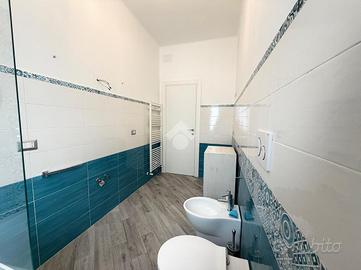 L'appartamento è composto da ingresso in corridoio con porta blindata, salone doppio di generose dimensioni dotato di una finestra ad ovest e di due portefinestre rivolte a Sud, dalle quali si accede alla prima balconata con splendido affaccio aperto verso sud e scorcio mare.