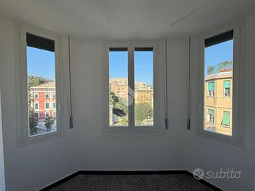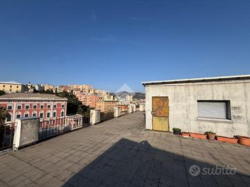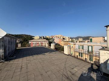 Via Cornigliano , nella principale via del quartiere , comoda a mezzi e servizi , proponiamo appartamento di 8 vani ristrutturato , posto all'ultimo piano di uno stabile in buono stato e dotato di ascensore . dal portone d'ingresso si accede all' Ampio salone con balcone e tre finestre , 3 camere da letto , doppi servizi completi , studiolo/ampia dispensa , cucina abitabile . Il riscaldamento è autonomo con caldaia nuova , gli infissi in alluminio di ultima generazione. pregio dell'immobile è il diritto d'uso esclusivo della porzione di terrazzo soprastante l'appartamento .